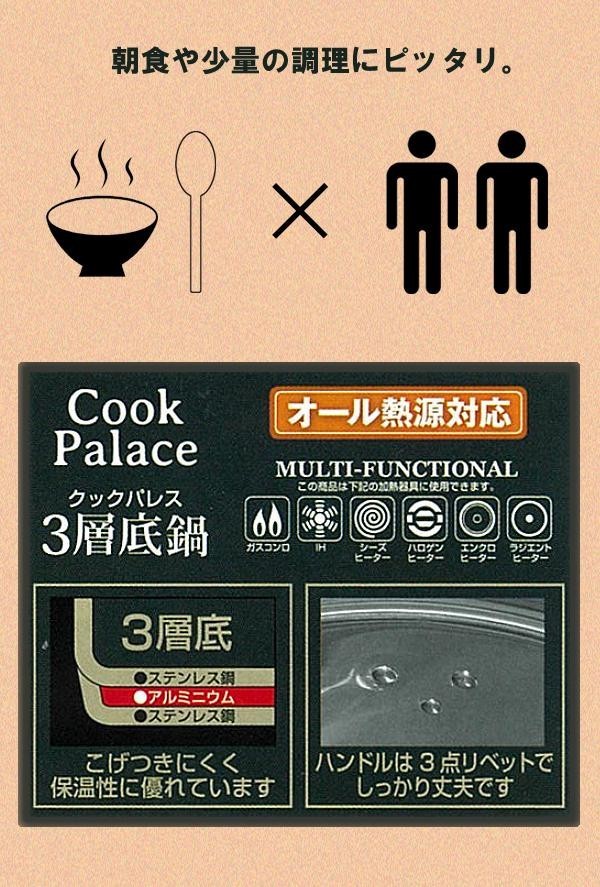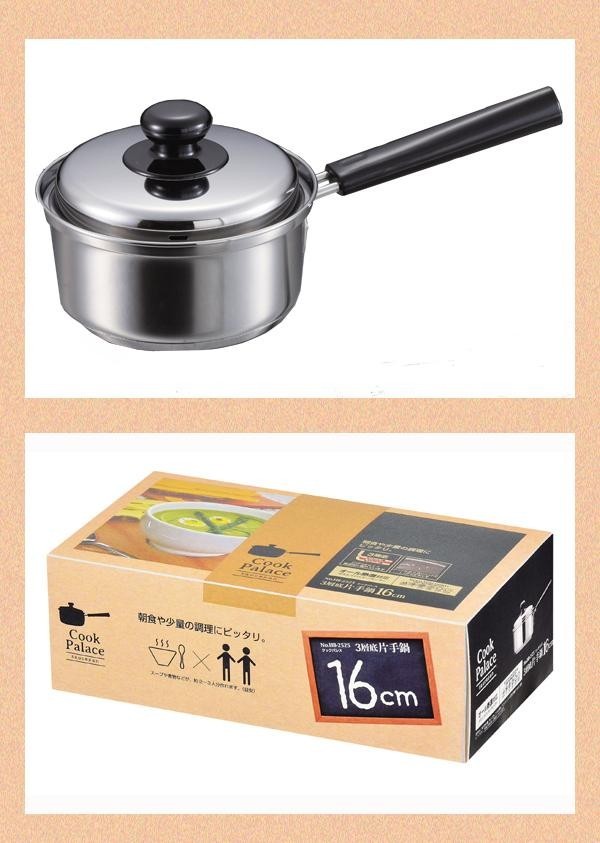 | 素材・材質 | 本体・はり底:ステンレス鋼(クロム16%) 蓋:ステンレス鋼(クロム16%) 取っ手・つまみ:フェノール樹脂(耐熱温度150度) つまみの座板:ナイロン(耐熱温度180度) |
