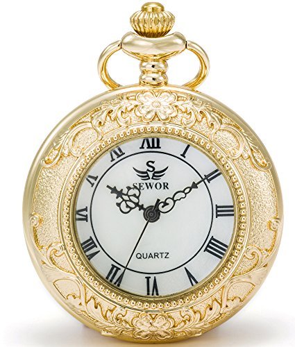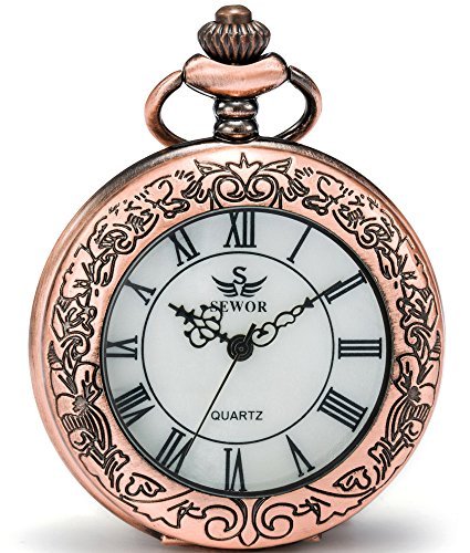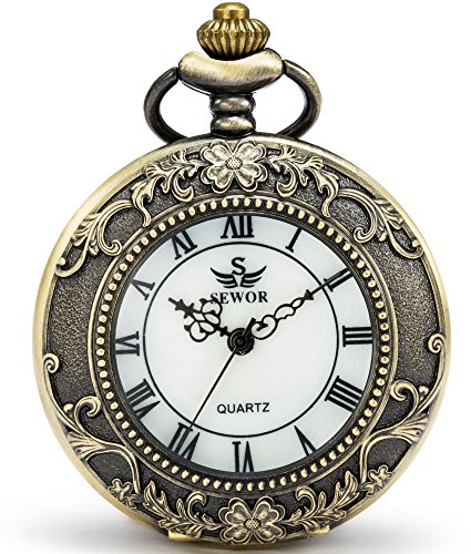 SEWOR Sewor 고전 확대경 쿼츠 회중 시계 쉘 다이얼 브론즈 케이스with 2개 타입 체인(레더+메탈)