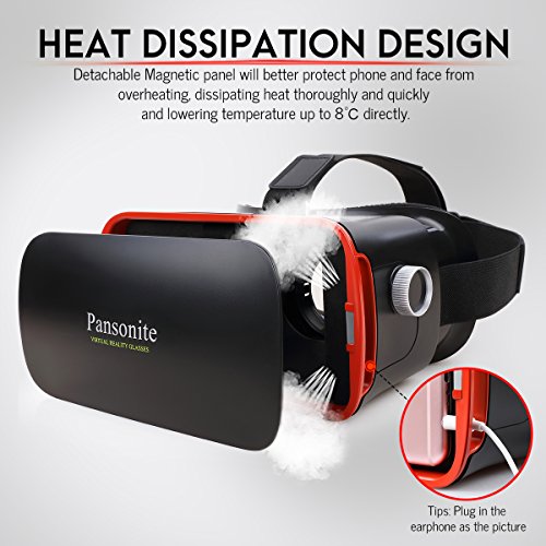 Studio : Pansonite Publisher : Pansonite Binding : Electronics Product Description Do you want to watch an exciting 3D movie at anywhere and anytime? Do you want a real racing, marching in gunfire or shooing bullets in battlefield in 3D games? Do you want to immerse yourself thoroughly in the 3D VR world for longer time? Do you spend hours trying to focus the lenses of other Virtual Reality glasses...and you may still never get it 'Just Right'? The Pansonite 3D VR glasses virtual reality headset will resolve your concern! With the Pansonite Virtual Reality Glasses, you can watch the best shocking movies in your own private cinema, turn 360 degrees, travel around the virtual world, simulated Lunar, Mars, Seaside, Jurassic Park and other panoramic scenes, you can also experience the roller coaster, live CS, big swing clock and other exciting games without going out of the house. You'll Finally Experience More Comfortable Natural VR World with the Pansonite 3D VR glasses! Good Heat Dissipation: Much faster heat dissipation than other similar products with detachable front lid. Easier to Focus Invisible Lenses: You can adjust your VR lenses to the right position in as little as 10 seconds to avoid eye strain. More Comfortable: Extreme lightweight material reduce pressure around your eyes and on your head. Soft and breathable leather foam keeps your eyes comfortable even after hours watching. You will not feel visual fatigue or dizziness even if you use it for a long time because of the resin lens. More Real Experience: Wider view of vision, precise head-tracking and low latency brings virtual to reality. Package include: The Pansonite VR headset Cleaning cloth User manual 100% Guaranteed Customer Service If you are not 100% satisfied with the quality of the product, please contact us without hesitation. Your 100% satisfaction is guaranteed. 0