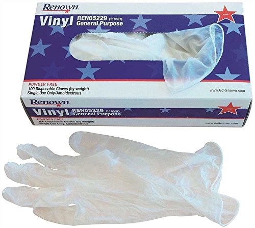 Renown REN05229 Ambidextrous Disposable Powder-Free General Purpose Vinyl Gloves, 118567, 4 mil, Small, White