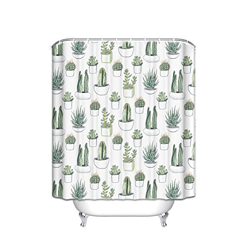 Prime Leader Cactus Aloe Vera Green Potted Waterproof Bathroom Fabric Shower Curtain,72"(w) x 72"(h) with Hooks
