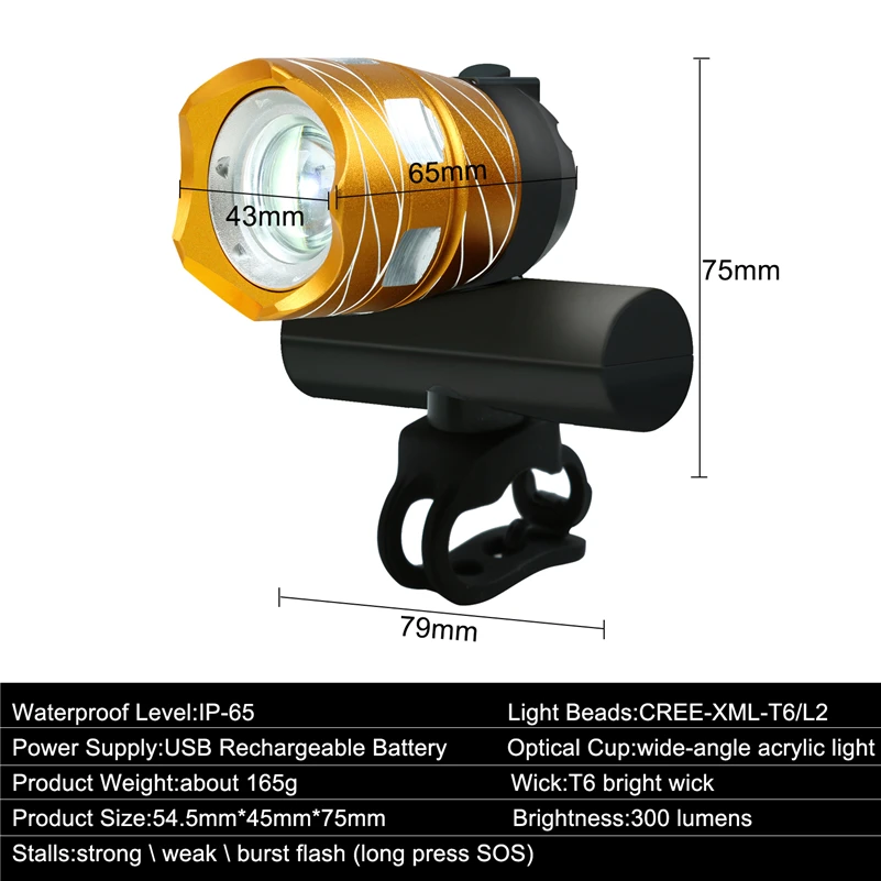 Free Zoom Bike Light 4 Modes:Strong / Weak / Burst Flash (Long Press SOS)