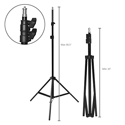 ?Height adjustable Min 50"-Max 86" ?Solid Safety 3 Legs Stages ?Light Weight Easy to Carry ?1/4 Inch Standard Screw Thread Tip ?Solid Locking System for Light Safety ?Carry Bag Included
