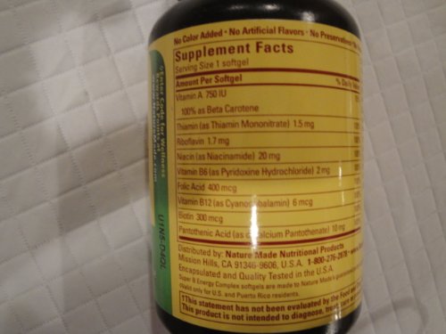 -. Binding : Health and Beauty -. Brand : Nature Made -. Feature : (2 Pack)-Nature Made Super B Energy Comples, 60 Softgels each / Easy to Swallow Soft Gels. / Supports Cellular Energy Production. / No Artificial Colors. No Preservatives. No Yeast or Starch. Gluten-Free -. Label : Nature Made -. Manufacturer : Nature Made -. ProductGroup : Health and Beauty -. ProductTypeName : HEALTH_PERSONAL_CARE -. Publisher : Nature Made -. Studio : Nature Made -. Title : Nature Made Super B Energy Complex - Two Bottles