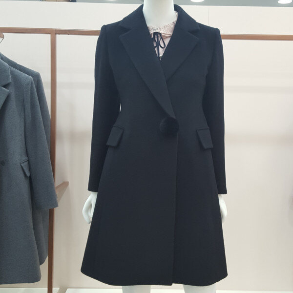 울70%인 고급 스러운 코트, 단추 부분 토끼털 방울로 동안 코트 입니다