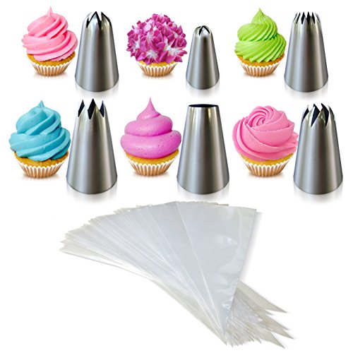 IF YOUR CUPCAKES DON'T LOOK GREAT, TRY THIS! –The elegance of a cupcake is only properly displayed through beautiful icing. With this amazing cupcake decorating set from Love2Bake, you’ll receive six of the finest quality EXTRA LARGE stainless steel piping tips and multiple disposable bags to create an amazing variety of gorgeous toppers for your cupcakes of choice! You don’t have to be a pastry chef to make awe inspiring dessert art!