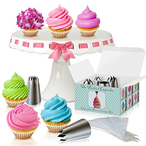Cupcake Decorating Kit - The Perfect Cupcake By Love2bake -X-Large Stainless Steel Tips & Icing Bags