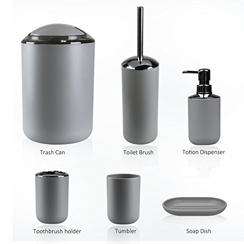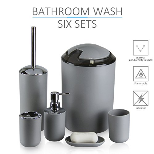 Product included: 1 x Waste Bin 1 x Soap Dish 1 x Lotion Dispenser 1 x Toothbrush Holder 1 x Rinse Cup 1 x Toilet Brush Holde