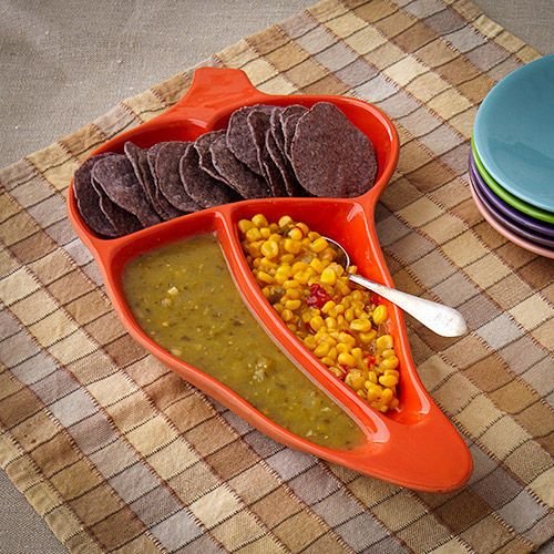 (Tag)/Kitchen Dining/Tableware/DIRECT FROM USA/Tag Glazed Terracotta Chili Pepper Shape 3 Part Divided Serving Dish Bowl Red