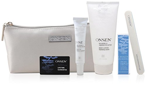 The body lotion and cuticle cream conditioner are 100% natural and based on Onsen's Micro Water Complex which ensures maximum, long-term results. The kit comes in a convenient, fashionable zipper bag. It makes a "must have" kit to carry with you anywhere to keep your hands and feet looking beautiful.