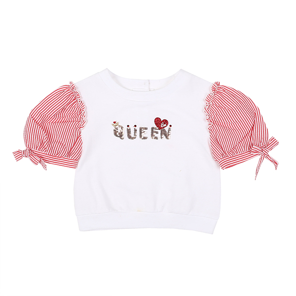 상품설명 화이트 면 원단과 레드 스트라이프 요루 원단이 믹스된 배색 티셔츠입니다. 소매에는 라이프 블루 스트라이프의 요루 원단으로 배색되어 더욱 시원한 느낌을 줍니다. 그리고 골드 퀸 로고 포인트로 고급스럽게 마무리 되었습니다. 데님 팬츠와 캐주얼하게 코디하기 좋습니다.