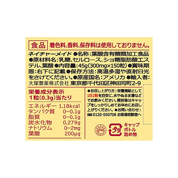 원본상품명: 大塚製? ネイチャ?メイド 葉酸 150粒