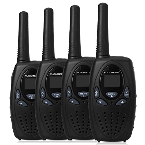Description This Floureon 4 pack 22 Channel walkie talkies with a generous 3km range (MAX 5km open field) can help you to keep in touch with roaming children or a friend during an outdoor activity or expedition into the wilderness.This 2-way walkie talkies can connect each other in remote area or wild field where phone signal is poor and it has the perfect portable size for outdoor adventures. There's even a convenient belt clip to attach your 2-way radio walkie talkie when not in use and a cool LCD backlit display. Features: -22 channel PMR system ,Simple and fun to use -Transmitting and receiving icons -Generous range up to 3km (MAX 5km open field) -Good sound quality,Adjustable volume level -Ergonomic design for firm grip, and complete with belt clip -LCD backlit display, battery status indicator -Built-in mini LED torch -Stay connected to friends and family -Great for supermarkets, shopping centres, festivals and any outdoor activities Specification: Squelch: Auto squelch, CTCSS/DCS Scan: Auto scan 22 CH Alert: Call alert Lock: Channel lock Voice Transmit: PTT/ VOX function Radio Service: FRS/ GMRS Talk Range: 3 miles (MAX 5 miles in open field) Frequency Range: UHF 462-467 MHz Type: Handheld Battery: 3x AA batteries for each Earphone Jack: 2.5mm/ 0.1inch Package Included: 4 x Walkie Talkies(12*AA Batteries Not Included) 2 x User's ManualFeature