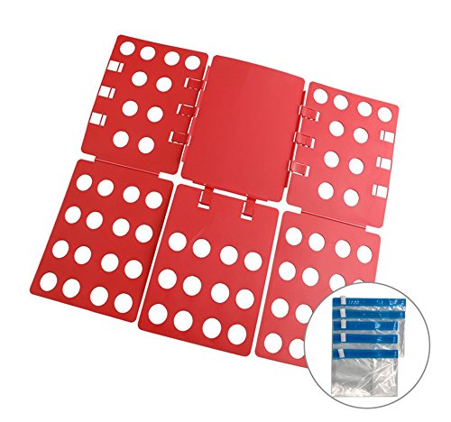Do4U Clothes Folder Shirt Folding Board Pants Towels Organize Large Size Adjustable With 5pcs Rolling Travel Vacuum Seal Clothes Storage Bags (Red)