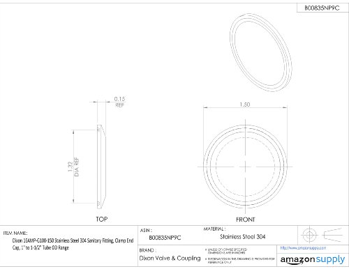 Dixon 16AMP-G100-150 Stainless Steel 304 Sanitary Fitting, Clamp End Cap, 1" to 1-1/2" Tube OD Range