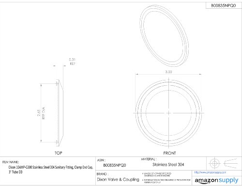 Dixon 16AMP-G300 Stainless Steel 304 Sanitary Fitting, Clamp End Cap, 3" Tube OD