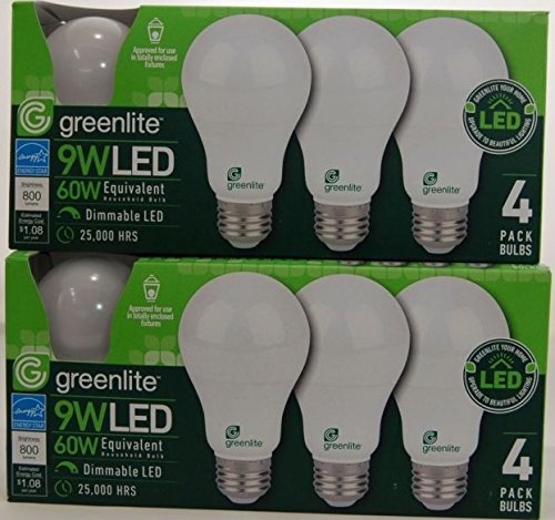 Greenlite - 8 pack - 9W LED Bulb 60W Equivalent- Dimmable A19