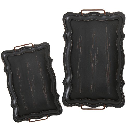 Features 2 individual trays made out of wood and painted with a matte black rustic-style finish, both of a rectangular shape with 1 smaller than the other.