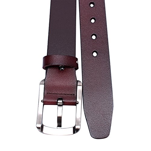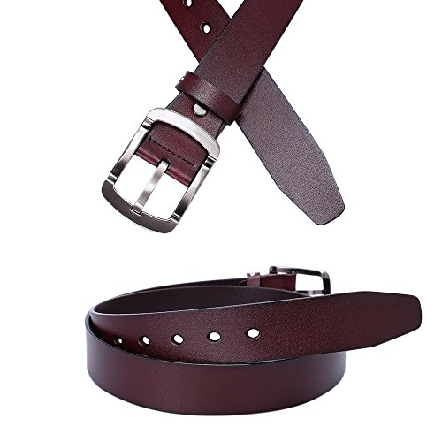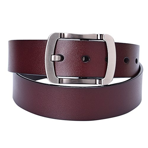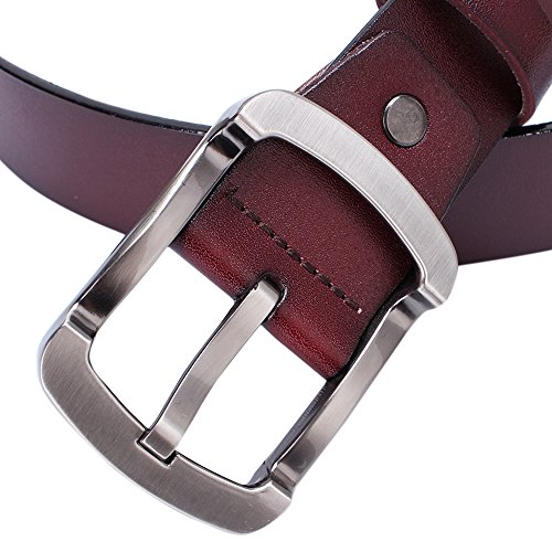 Made of high quality genuineleather and alloy pin buckle.; Antique and casual style.This belt fits special occasions, uniforms, casual, job, or business meetings; Please buy one size larger than your waist,If the belt is too long for you, you can trim the strap to fit your size.