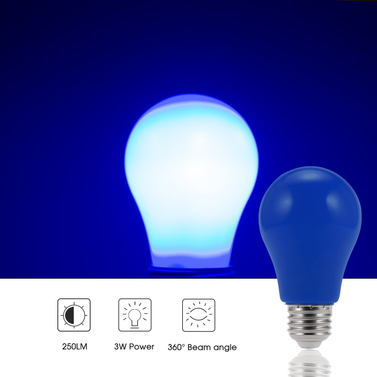 Item name: A19 LED ball bulb (round bulb) Stocking decoration LED light Blue light 2 pieces Power Rating: 3W? Rated Voltage: 100V Total Luminous Flux: 250 lumens? Base: E26 Rating Life: 30000 hours / 1 year warranty Energy saving:
