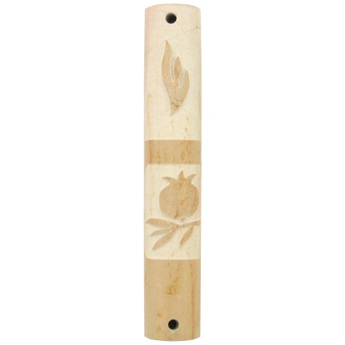 Hand Cut Marble Mezuzah Case with Pomengranate (Beige)
