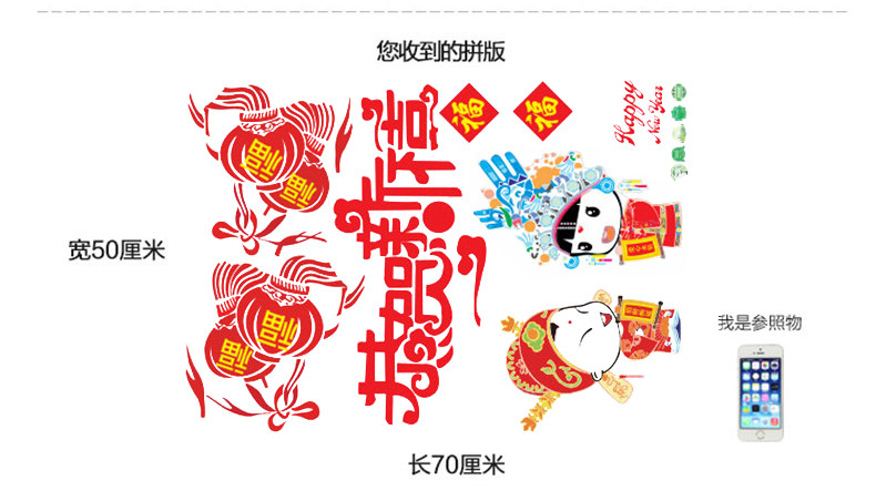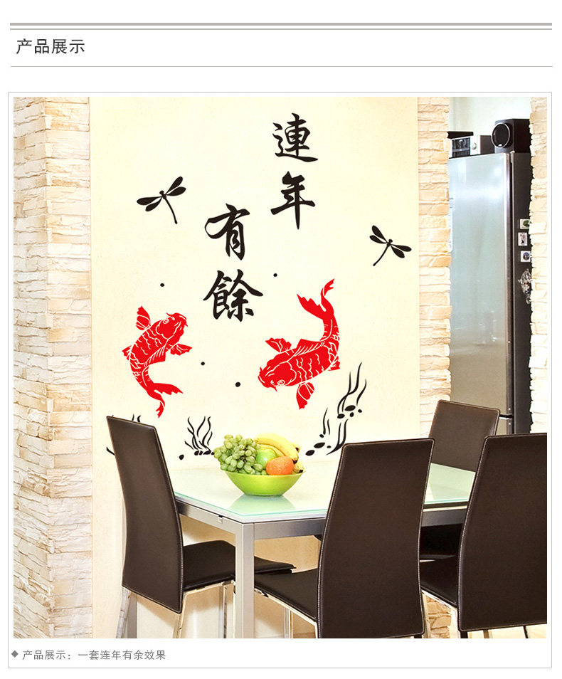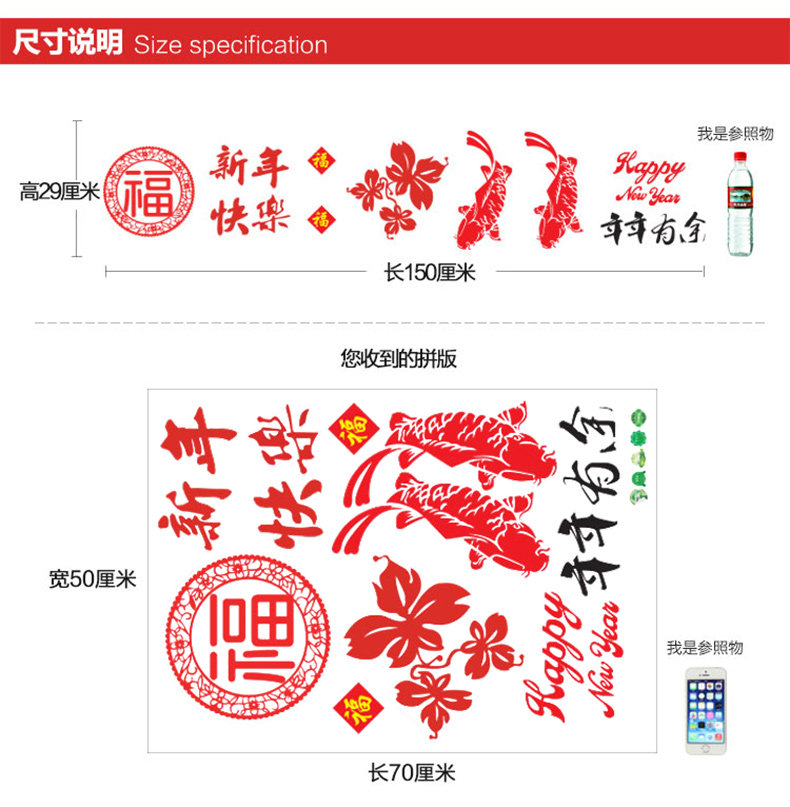 B. Removable wall stickers New Year New Year New Year Chinese style living room wall wall decorations every year there are fish