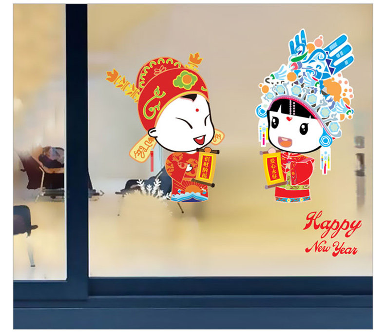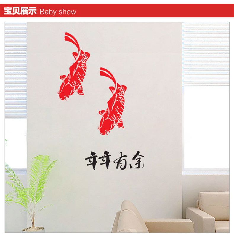 E. Chinese style year after year more than a fish wall stickers glass window stickers New Year New Year Wall Decoration
