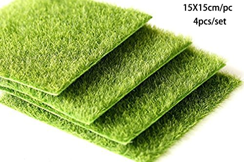 4 PCS/SET Artificial Life-like Grass Lawns Green Synthetic Turf Miniature Ornament Micro Landscape Ornament Decoration (15X15cm)