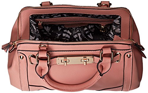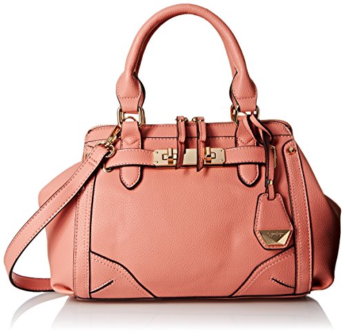 The bethany crossbody frame satchel is constructed in baby pebble pvc and features double handles with a 5.75 inch