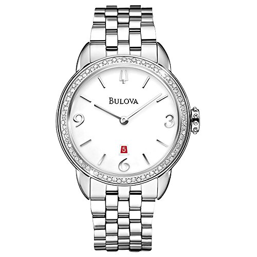 -. Title : Bulova Diamond White Dial Stainless Steel Ladies Watch 96R183