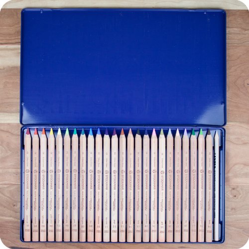 Studio : Stockmar Publisher : Stockmar Binding : Office Product Product Description Made from unpainted softwood, the rounded and triangular shape of these colored pencils make it easy for samll hands to hold. The extra thick lead is unbreakable. Set of 24 colors include: carmine red, vermilion, orange, golden yellow, lemon yellow, yellow green, green, blue green, blue, ultramarine, blue violet, purple, rust, yellow brown, black, prussian blue, pink, gold, silver, light pearl pink, lilac, dark green, light green and brown. The extra colorless pencil, the splender, allows you to create fantastic shadowing and spatial effects by binding and compressing the color particles, giving the colored surface a polished appearance. 0