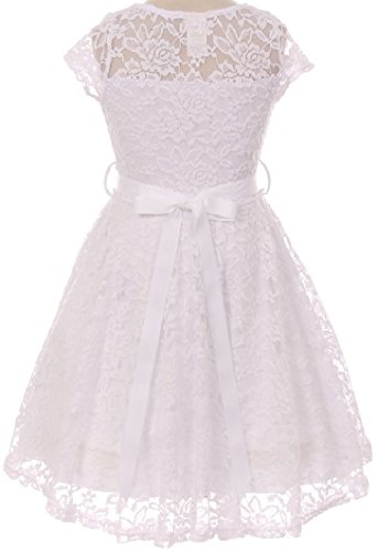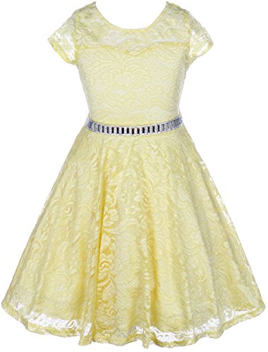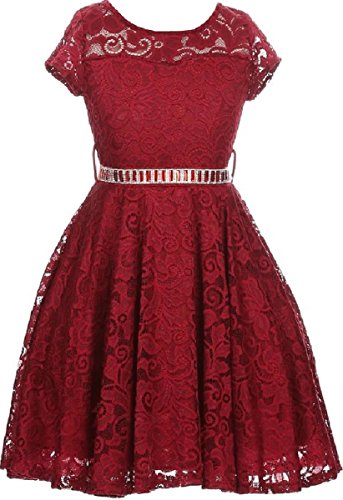 Gorgeous dress that complements the features of your special little girl! Cap Sleeve Lace Flower girls Dresses. Lace Skater Dress with Stone Belt. Zip up back and tie-back sash. Dress is tea length and fabulous! Perfect for flower girl, Junior Bridesmaid, Easter, Pageant, Graduation and other special occasions.Feature