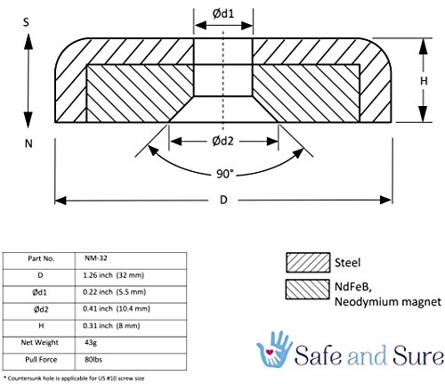 2Pcs Powerful Neodymium Round Base Magnet -Rare Earth Fastener -80LBS Strong Holding Power -Multi-Purpose & Gifts - Magnetic Ring Latch with Countersunk Hole,1.26" Dia Steel Housing & #10 Bolt Screws