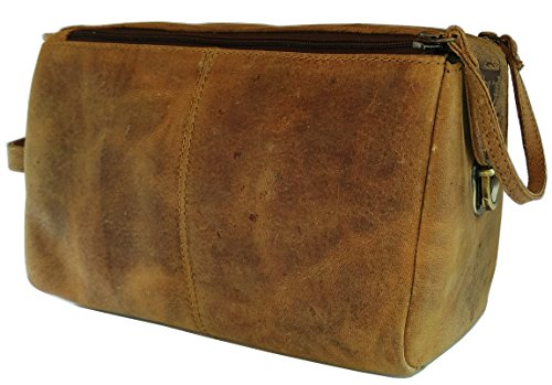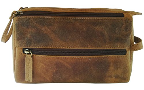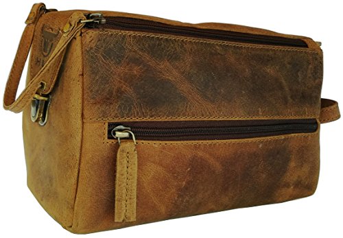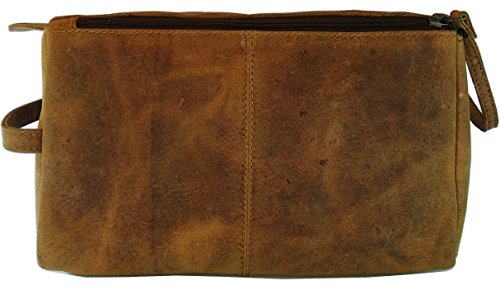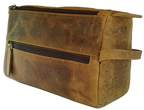 Handmade Buffalo Genuine Leather Toiletry Bag Dopp Kit Shaving and Grooming Kit for Travel ~ Gift for Men Women ~ Hanging Zippered Makeup Bathroom Cosmetic Pouch Case by Vintage Coutoure