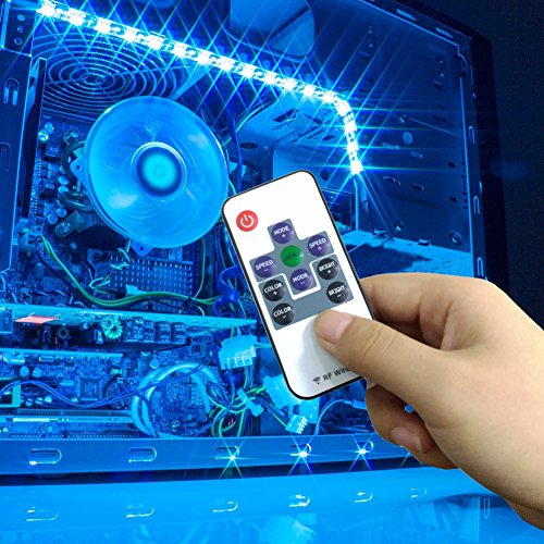 - Multi Color Changing: red, blue, green, white, strobe, flicker, shade, cycle, multi color changing controlled by 10keys RF remote controller, customize your workspace with vibrant LEDs to set the mood and illuminate your hardware