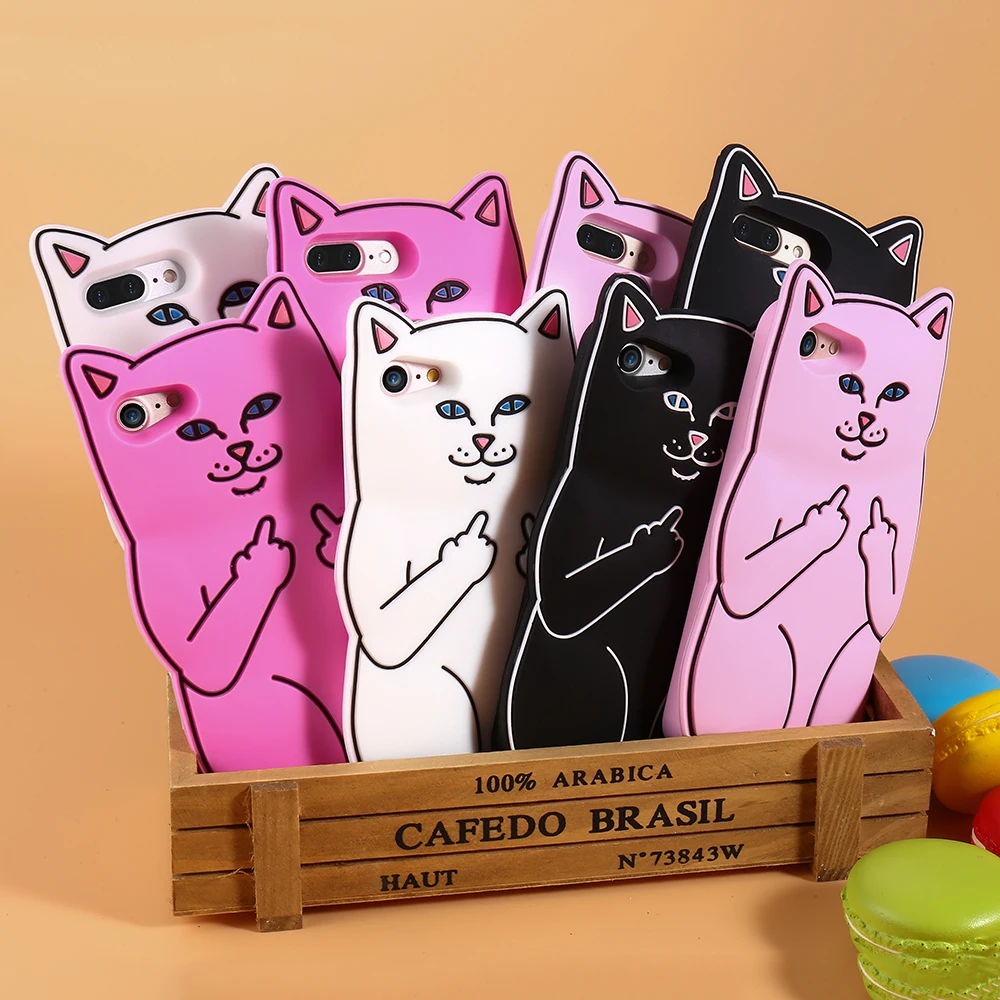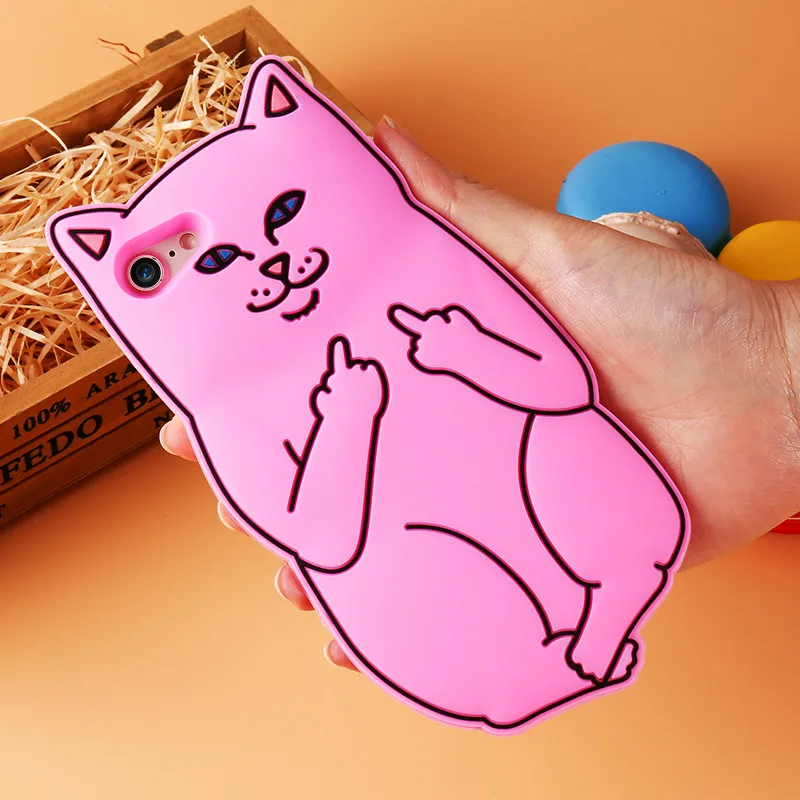 Features:Soft Silicon 3D Cat Cartoon Rubber Middle Finger Phone Case