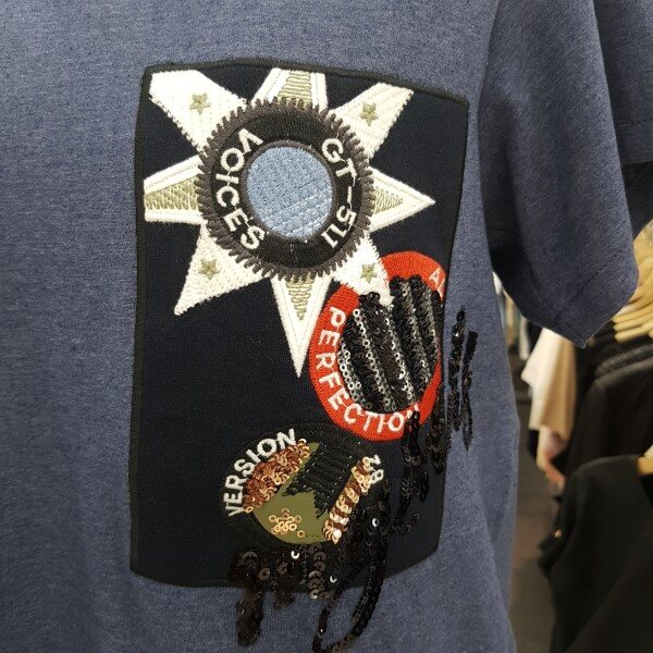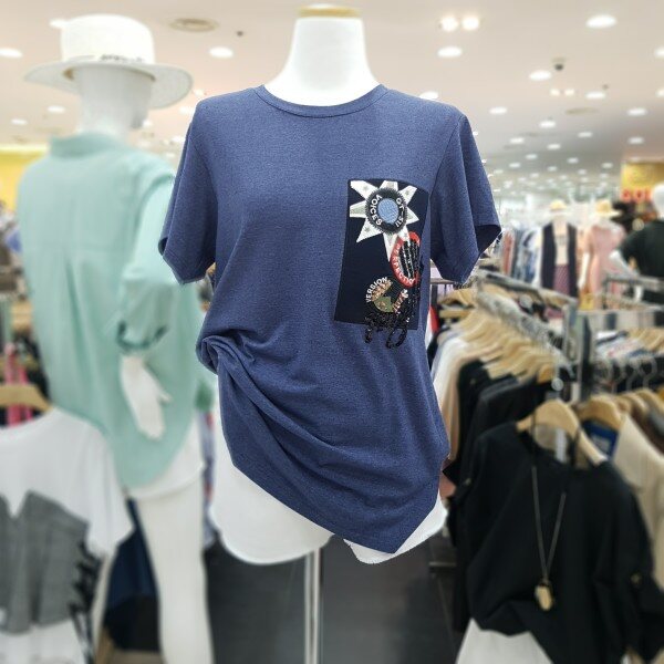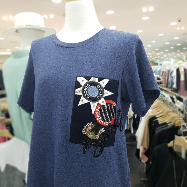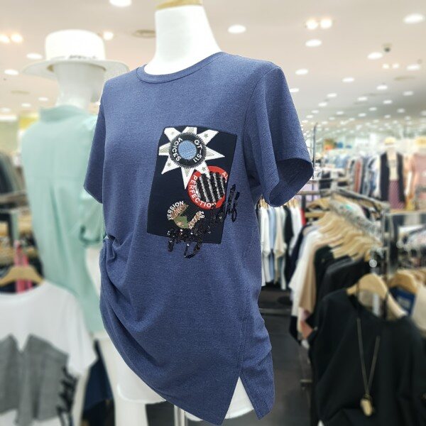 스팽글 장식과 자수디테일이 돋보이는 하프 슬리브 티셔츠 입니다신축성이 좋은 소재로 편안한 착용감을 느끼실수 있습니다다양한 하의류와 스타일링을 연출하실수 있는 아이템 입니다