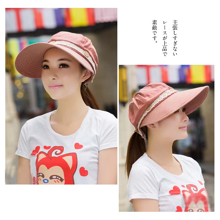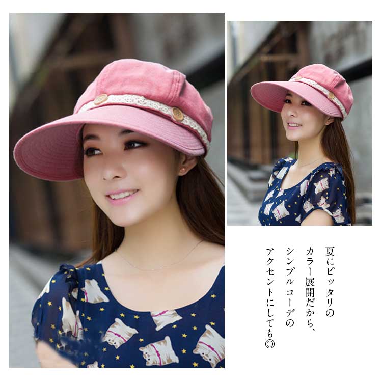 | 軽くて快適!機能性に優れたオシャレなシルエットのキャスケット。少し大きめのつばが紫外線対策にピッタリ!すっぽり被れて、後ろ部分はマジックテープでサイズ調整も可能です。主張しすぎないレースが上品で素敵です。ボタンで上部分取り出しできて、気軽に被れる2WAY様もウレシイ。夏にピッタリのカラー展開だから、シンプルコーデのアクセントにしても◎オシャレを演出しながら夏の日差しもしっかりカット♪ | |