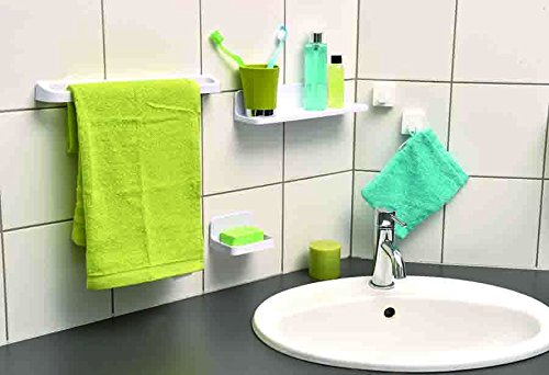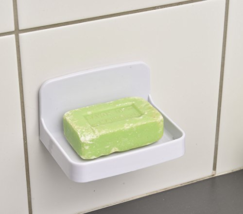 -. Feature : Ideal for use on shower wall or bathtub wall,easy to install, do not apply, peel and stick mirrors to fresh paint, or to delicate surfaces like fabric and wallpaper / Tidy up your shower area and keep your soap within reach! Great for kitchen, bath or shower wall! / 2 ways of fixing : with strong adhesive pad (supplied) or wall mounted (screws not supplied) / Dimensions : 4.3"L x 3.2"W x 2.4"H/ Made of ABS thermoplastic polymer, durable and resistant plastic, rust free. Accessories sold separately / Features drainage slots and a draining hole to avoid stagnant water, keeping your bar of soap well-ventilated. Complete your decoration with other products of the same collection SALI, like shower caddy shelf, set of hooks or towel bar.