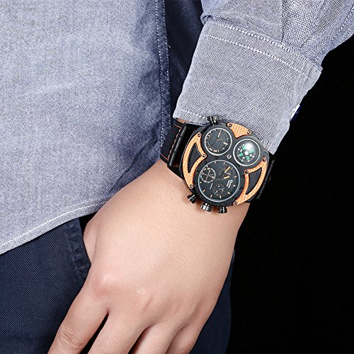 -. Title : Rockyu ブランド 人気 腕時計 メンズ レディース 羅針盤 ウォッチ カジュアル サファイアガラス ブラック レザー 革 バンド [並行輸入品]