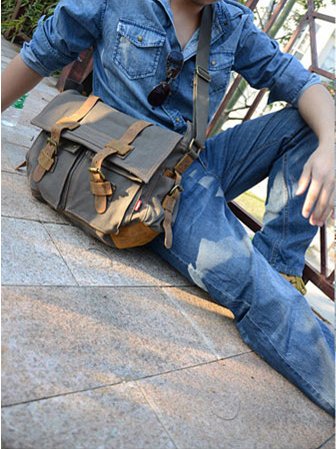-. Title : Modovo 10L Retro Messenger Shoulder Bag Fits 14" Laptop High Density Canvas Military