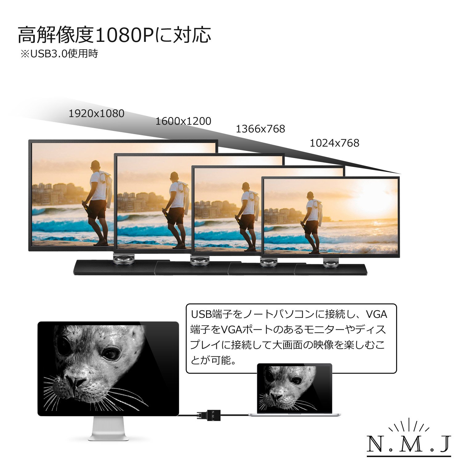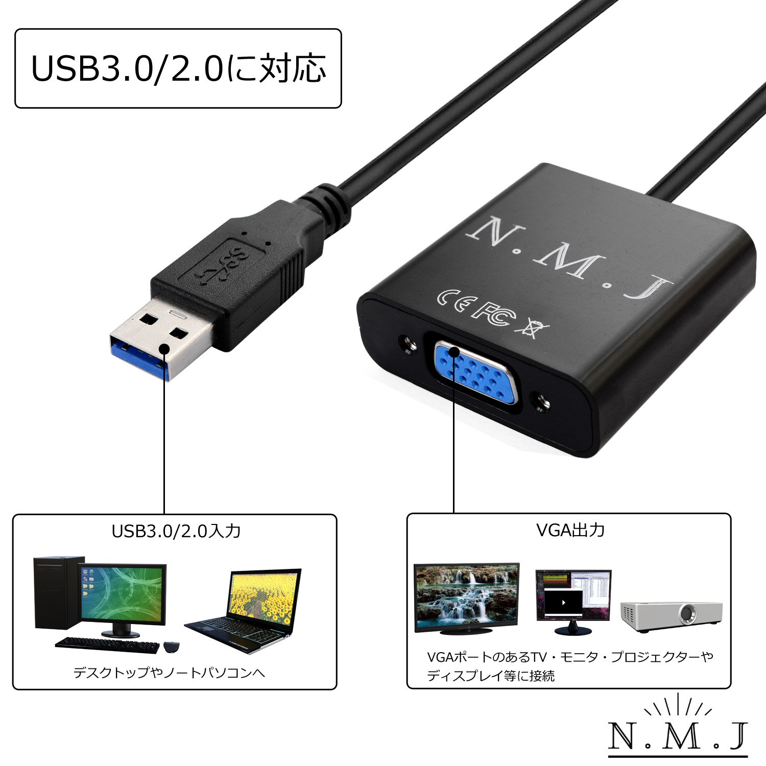 It is an adapter for using a monitor or projector with a VGA terminal from PC with USB3.0 / USB2.0, etc. It is possible to convert from USB male to VGA female.