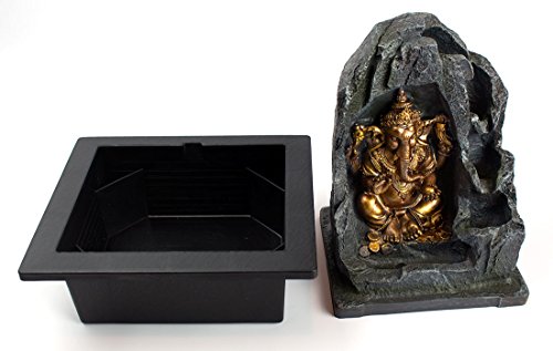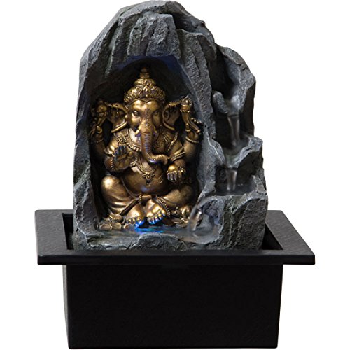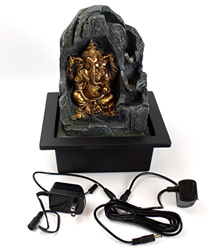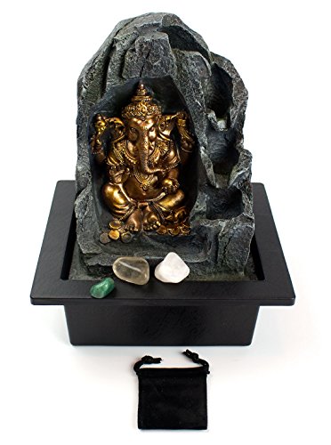 Golden Ganesha Hindi Indian Elephant Lighted Fountain with 3 Healing Stones and Pouch (5 Pc Bundle) 364