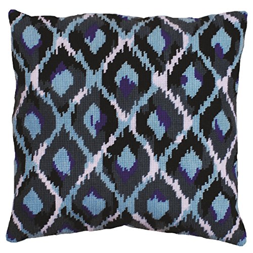 Tobin Needlepoint Kit Stitched in Yarn, 12 by 12-Inch, Blue Ikat