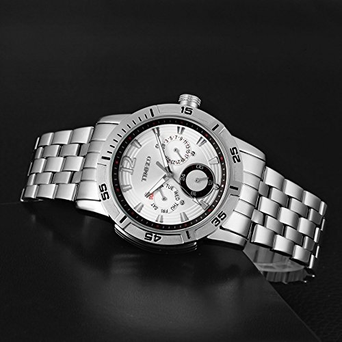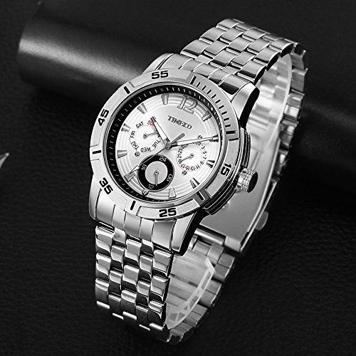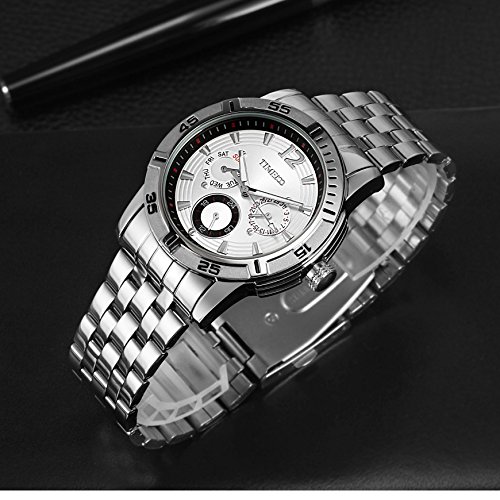 -. Feature : 日付、曜日表示、多機能、メンズ向け、ファッション / ビジネス、アダルト向け、折れプッシュタイプ中留 / 父の日のプレゼント  クロノグラフ、ラウンドフェイス、ステンレス / ステンレス鋼ケース、ステンレス鋼裏蓋、金属文字盤 / 多針アナログ文字盤、強化ガラスミラー、クオーツムーブメント