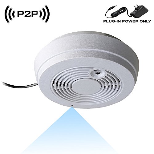 -. Feature : ((( PLUG-IN POWER ONLY ))) (Superior glass optics, not plastic) (Lizvie App, Blue Iris & iSpy Connect Compliant) Please note: This model comes with 12VDC power adapter and will not connect directly to 110V power for your existing smoke detector). Ideal for drop ceiling mount. (Direct 110~220VAC model available: WF-402SAC) / Super low light, wide angle, high resolution, 1.3 MP, 720P, 1/2.8" sensor, fast wireless-N speed WiFi connection. True P2P automatic set-up technology, anyone can set-up in minutes! (Please see the diagram) / i-Phone, android smart phones and tablet friendly. ONVIF compliant, Signal secured by User ID and password / WPA Encryption. / Internal 8GB SD card memory (36hrs of video w/ loop). Extensive Central Monitoring Software for PC recording (proP.R.Ietary), connect up to 32 cameras / No monthly fee what so ever, record on to your own PC using included CMS software or smart phones.