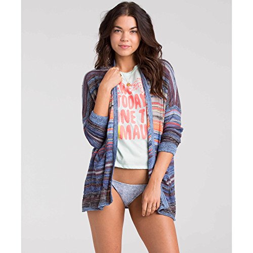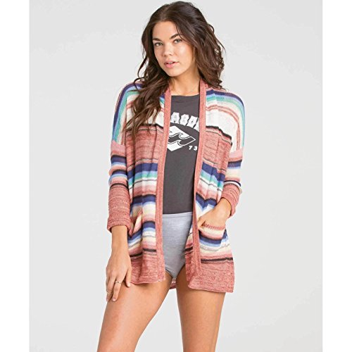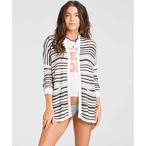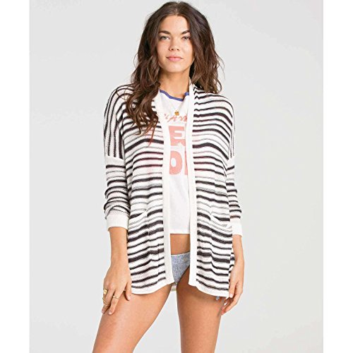 Oversized lightweight sweater knit cardigan with allover stripes, front pockets and tacked rolled sleeve cuffs.