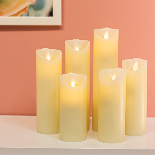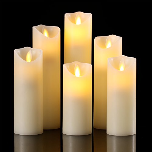 Pandaing 5" 5.5" 6" 7" 8" 9" Set of 6 Flameless Battery Operated Candles with Remote Control 2/4/6/8 Hours Timer Function, Classic Pillar Moving Flame Real Wax LED Candles