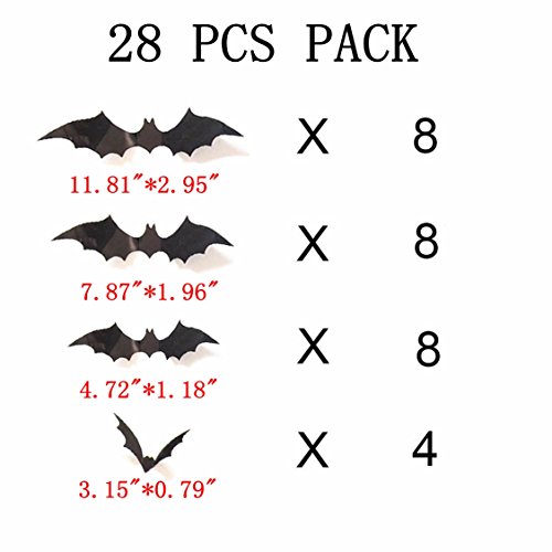 - 28 PCS PACKAGE AND SIZE - Each Pack Totally Includes 28pcs PVC Material 3D Bats. 11.81"*2.95"/ Each 8 Big Bats; 7.87"*1.96"/ Each 8 Medium Bats; 4.72"*1.18"/ Each 8 Small Bats; 3.15"*0.79"/ Each 4 Small Bats.