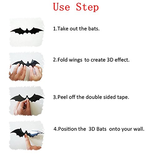 - 3D BLACK BAT DESIGN - Bats Packed Flat. The Wings Can Be Bent, DIY Them Into Different Wing Angles, To Add A More Realistic 3D Look. Scary 3D Bats All Over Arrange Them As You Wish. You Definitely Want Them In Your Halloween Party. Comes With Easy To Apply Style.